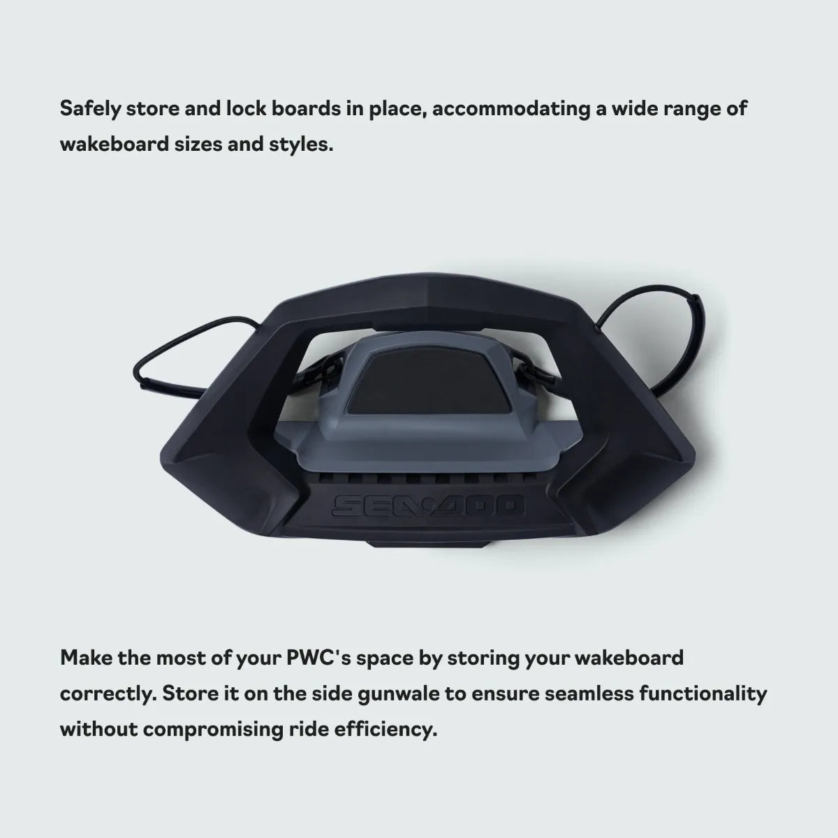 Mit dem Sea-Doo Wakeboard Rack (Teilenummer 295100838) haben Sie Ihr Wakeboard immer sicher und griffbereit an Bord verstaut. Das clevere Rack schützt die Kanten des Boards und ermöglicht schnellen Zugriff, wann immer Sie bereit sind, aufs Wasser zu gehen.