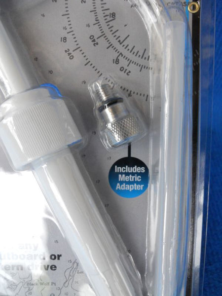 Füllen Sie Getriebeöl fachgerecht mit dieser Pumpe nach. Passt auf alle Original Quicksilver 1 Liter Getriebeölflaschen und alle Außenborder (z.B. Mercury, Mariner, Yamaha, Johnson, Evinrude etc.) oder Innenborder (z.B. MerCruiser) mit 3/8"-16 Gewinde. Mit dem inbegriffenen Adapter für M8 x 1.25 Gewinde passt die Getriebeölpumpe auch auf Yamaha und andere japanische Hersteller.. MIt Schlauch und Schraubgewinde für die meisten Mercury und alle MerCruiser Getriebe.