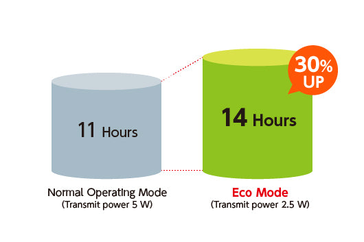 Lange Betriebsdauer: Der leistungsstarke 1500-mAh-Li-Ion-Akku liefert bis zu 11 Stunden Funkbetrieb.
